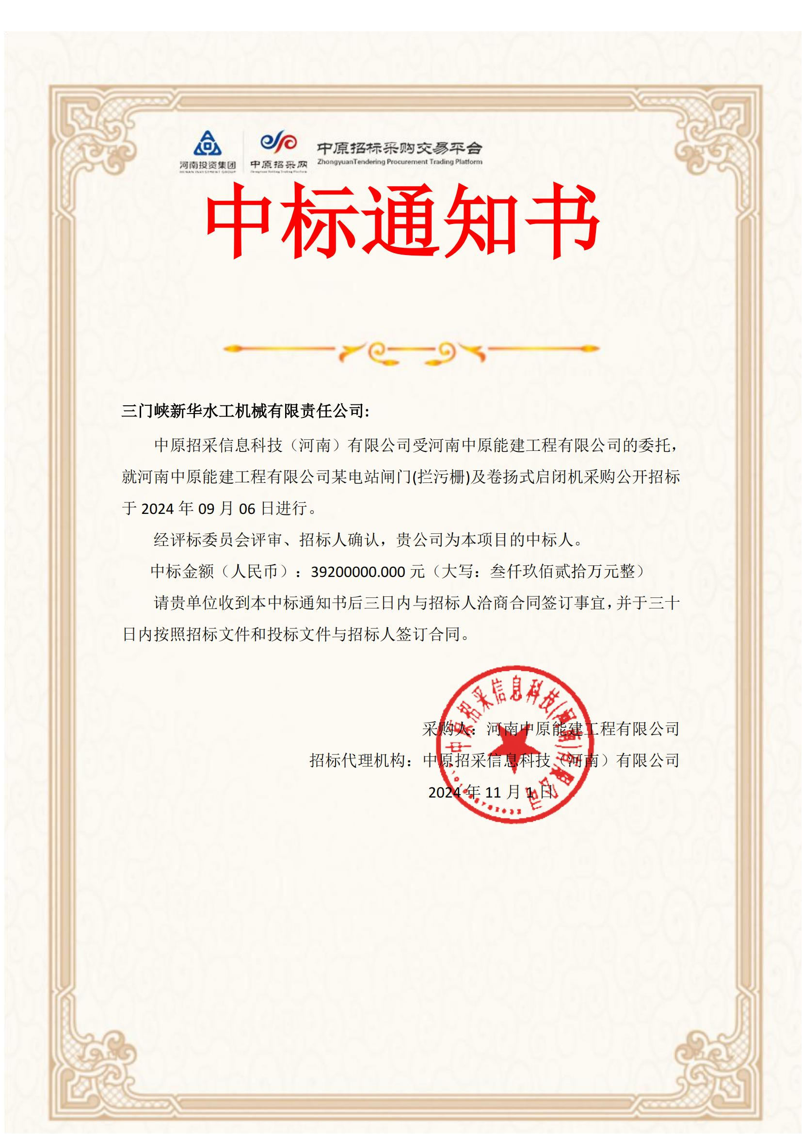 11月1日,三门峡水工成功中标河南鲁山抽水蓄能电站闸门(拦污栅)及卷扬式启闭机项目,合同金额3920万元。鲁山抽水蓄能项目的承接是三门峡水工继福建云霄抽水蓄能项目后,在抽水蓄能行业承接到的又一较大金额整单合同。