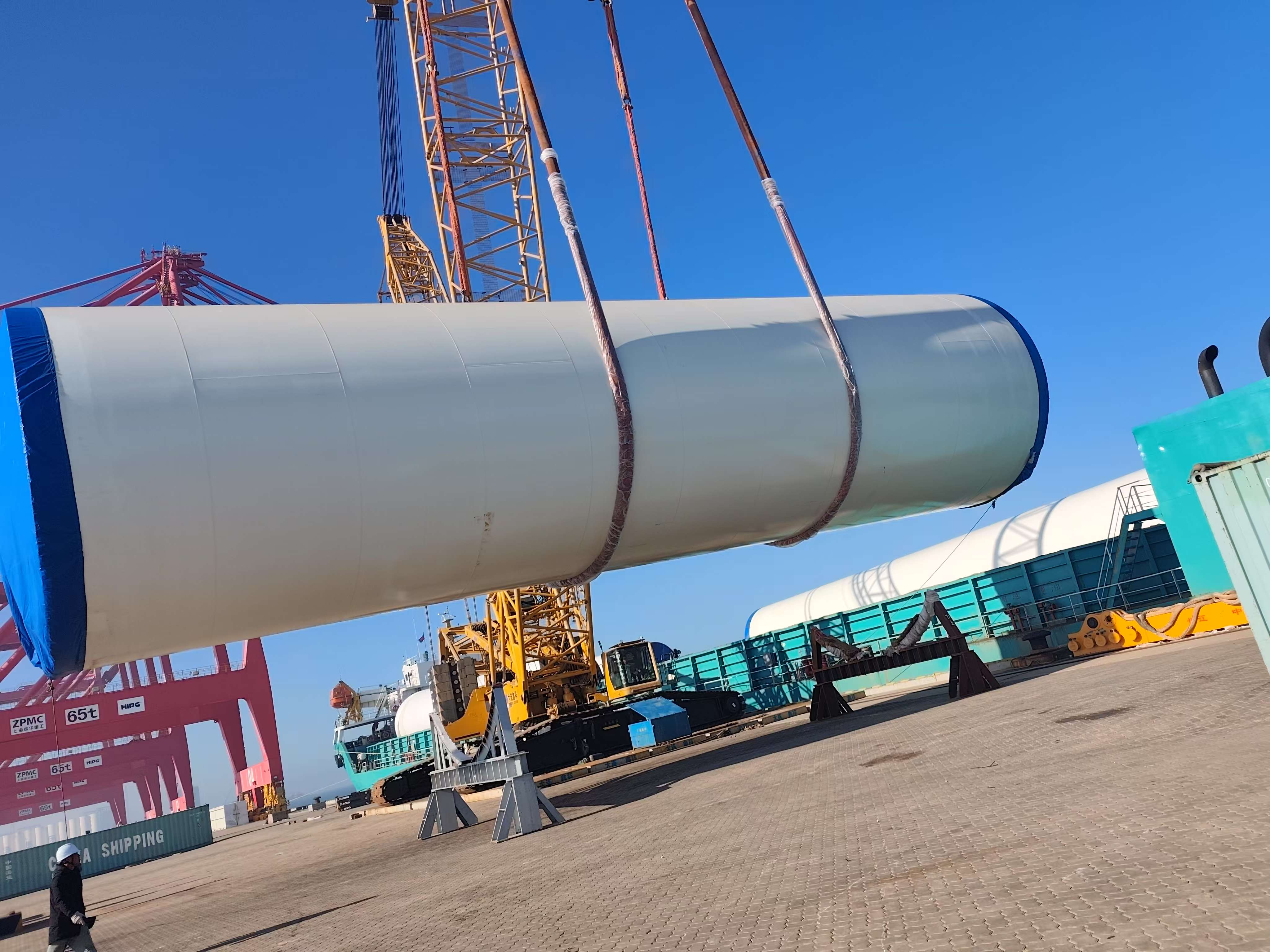 自承接该项目以来,为确保项目顺利实施,三门峡水工防腐公司组建专业的施工团队,深入研究项目特点和技术要求,按照既定的施工方案和质量控制计划稳步推进。在施工过程中,三门峡水工防腐公司采用了高性能的防腐材料和先进的防腐工艺,严格执行相关标准和规范操作,精准对风电设备的塔筒、管桩等关键部位进行全方位防腐处理,共完成塔筒112段,管桩四根,摩擦筒2件,其中最长单件长度90米,最大单件重量1500吨。